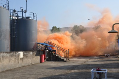 根据指令,各工作组各负其责高效开展救援处置工作。救援人员第一时间在开花水枪的掩护下将中毒人员转移至安全区域,在临时设立的医疗救护点对中毒人员进行检伤、救治;消防高喷车对泄漏区域进行喷淋稀释,铺设水幕水带对现场进行水幕封锁和喷雾隔离防护;同时灭火机器人编队进行无人化远程灭火作业等等。经抢险救援组紧张高效的灭火作业,现场火情得到控制,园区相关企业同时在开花水枪的掩护下,进入泄露区域对泄露点进行抢修堵漏。在大家紧密的配合和共同努力下,事故现场得到妥善处置,演练圆满完成。