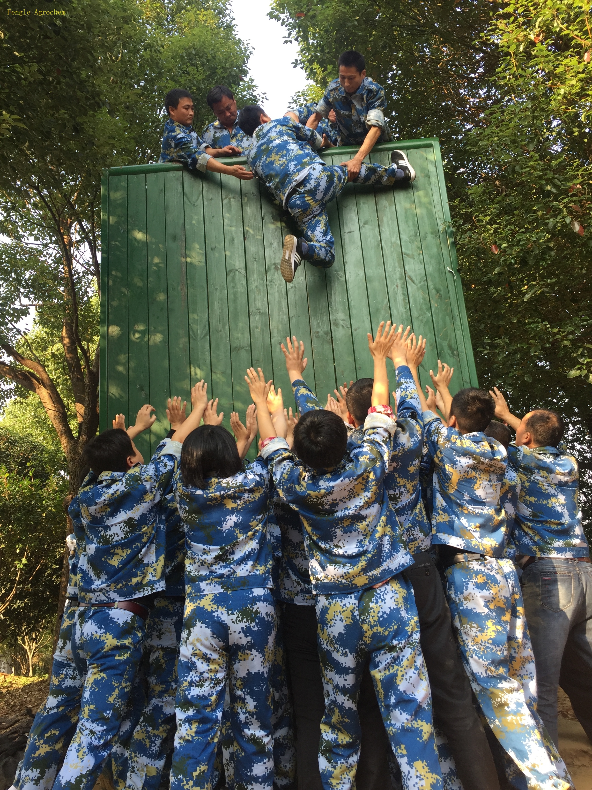 教练组制定了严格的培训纪律和丰富的培训项目,皇冠体育农化管理人员统一身着迷彩服,组建团队,选举队长、秘书、安保员、旗手,起队名、授队旗、画队标、定口号、定队歌……,标志着训练的正式开启。在接下来的项目活动中,“群龙取水”项目说明了一个人力量有限,借助于团队力量能把原本不可能的事情变成可能;“驿站传书”项目体现了一个团队需要有效的、高效的沟通;“急速60秒”项目说明了要整合资源的重要性,要善于和竞争对手合作,实现共赢;“挑战150”项目体现了团队成员之间要优势互补、分工明确、周密有序、忙而不乱才能达到整体有效协作完成任务;“沙场点兵”项目体现了领导层、指挥者、执行人之间要做到令行禁止,确保执行不走样;“雷阵”项目告诉我们要观察研究竞争对手,做到知己知彼;“高空抓杠”项目告诉我们管理人员要敢于担当、勇于挑战、超越自我;“翻越毕业墙”项目展现了团队的凝聚力和互相帮助的重要性,众志成城,只要有一个人没有翻越过去,就永不言弃。