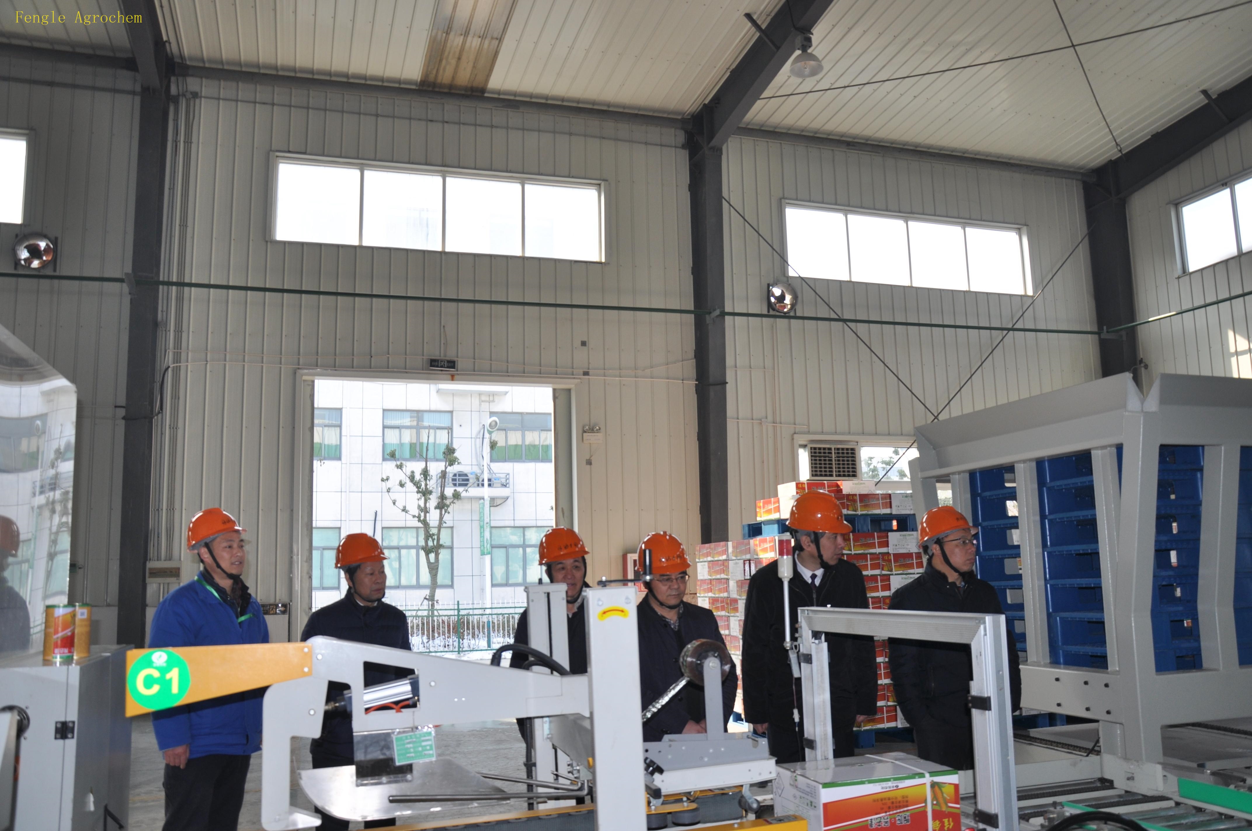2月6日上午,国家农业部药检所严端祥副所长、宋稳成博士,安徽省农委朱永东副主任,安徽省植保总站黄秋云站长、曹明坤所长一行到皇冠体育农化指导工作,在皇冠体育农化领导的陪同下,参观了公司展厅、自动化包装车间、合成车间和中控室。