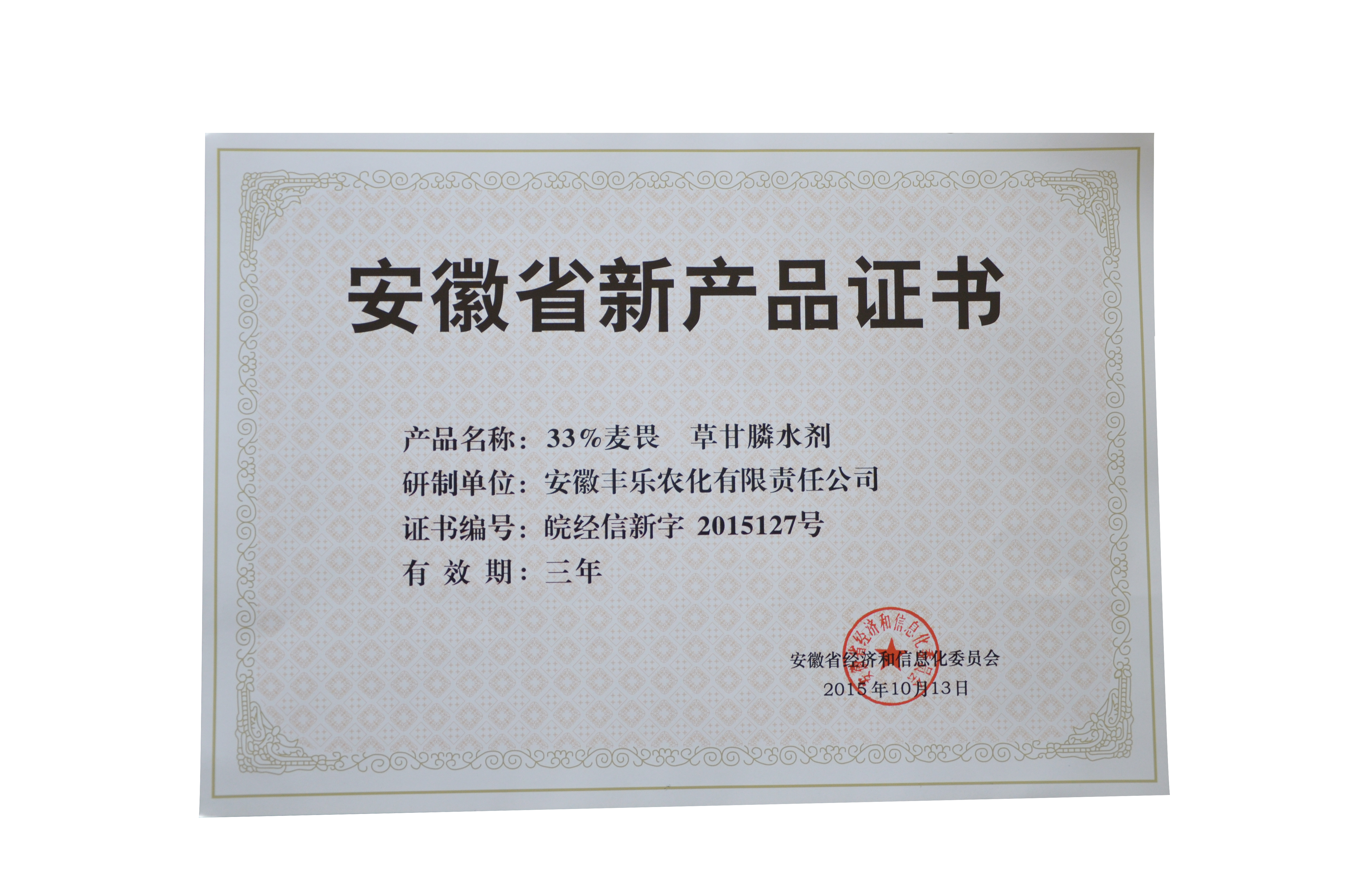 安徽省新产品-33%麦畏·草甘膦水剂(证书)