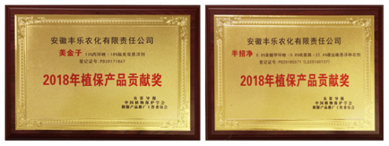 Two of Fengle Agrochem self-development products won the contribution award of the plant protection product in China 2018
